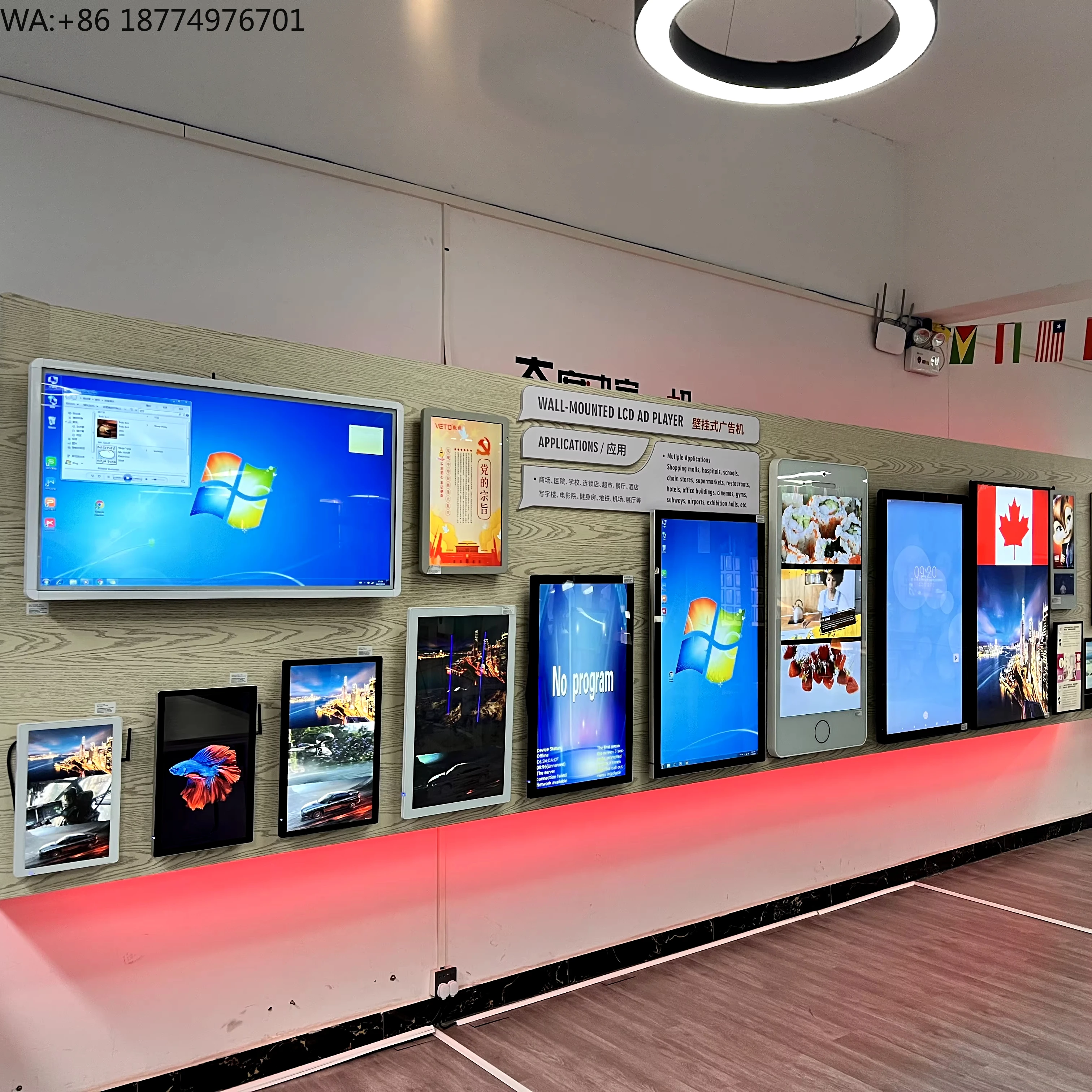 Schermo LCD con segnaletica digitale per appendere gioielli, negozio al dettaglio interno, funzione centro commerciale