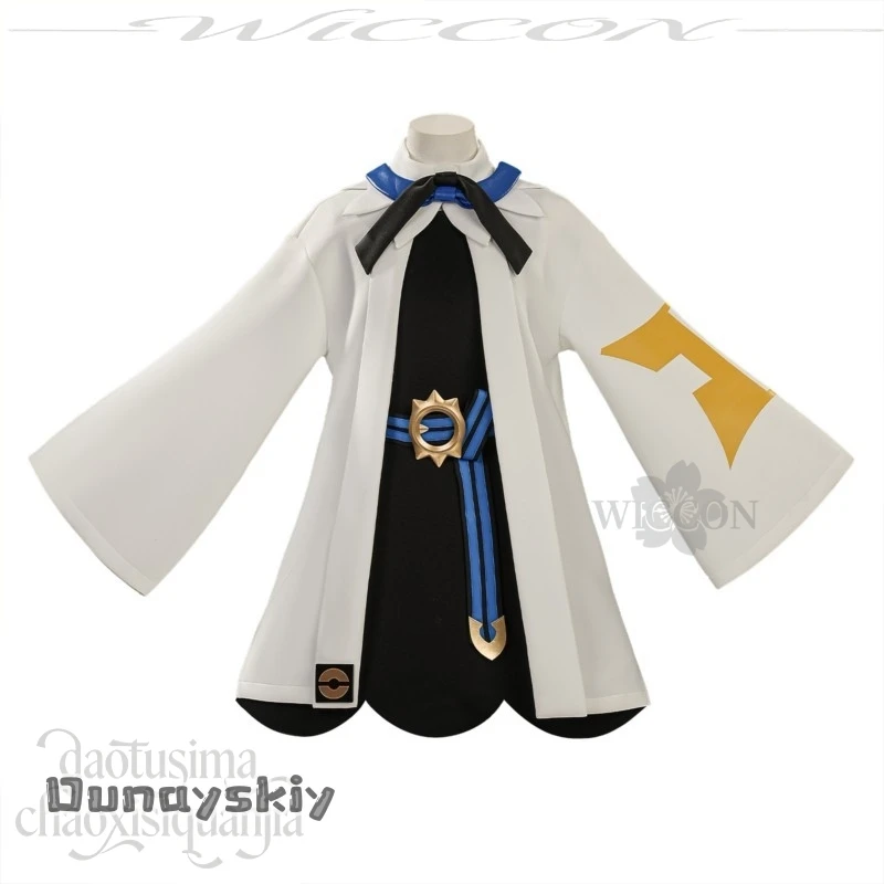 D St S@ Gioco Anime Gwynnnn Cosplay Kawaii Goth Lolita Bianco Carino Mantello Cappotto Nero Mini Abito Guanti Blu Cintura Parrucche Halloween