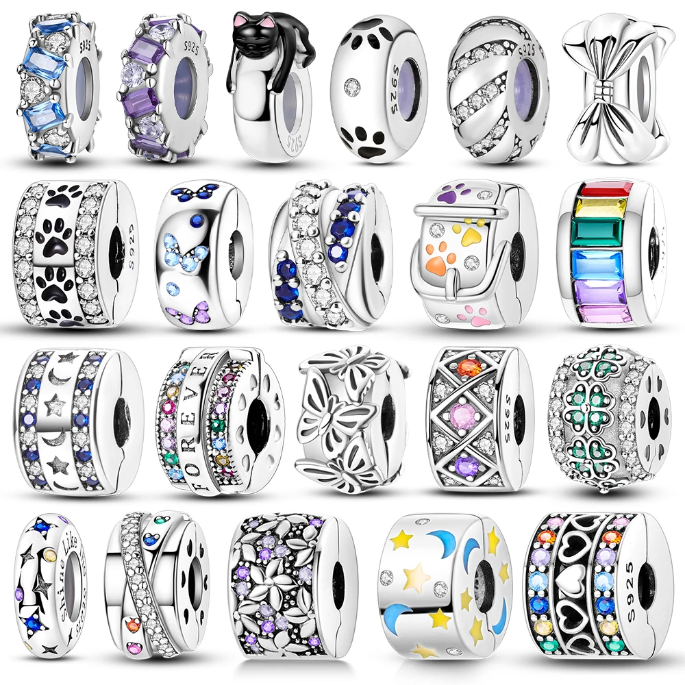 Ciondoli a clip Originali in argento 925 con tappo distanziatore in silicone, perline con chiusura, adatti per braccialetti, collane, creazione di gioielli, regalo da donna