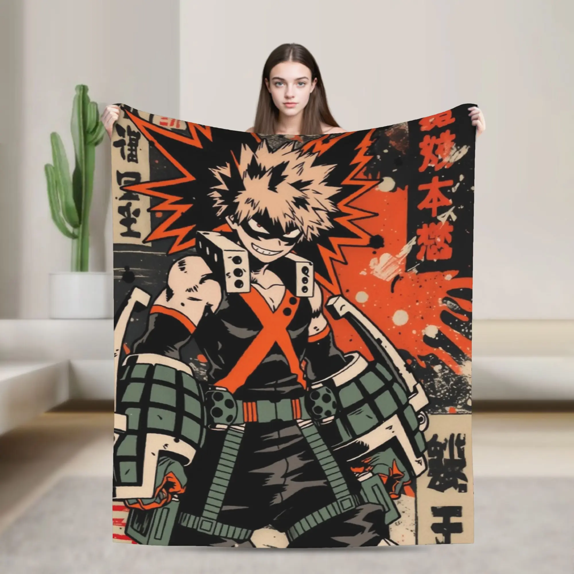 Katsuki Bakugo Vintage Grunge Avvisato Poster Coperta in pile Autunno/Inverno Coperte calde per biancheria da letto Biancheria da letto all'aperto