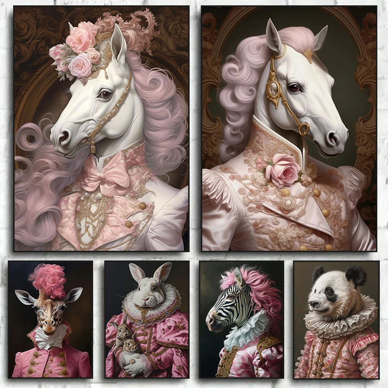 Rinascimentale Flamingo Rococò Giraffa Cavallo Conigli Stampe Art Canvas Poster Animali rosa Ritratto Immagini di arte della parete Decorazioni per la casa