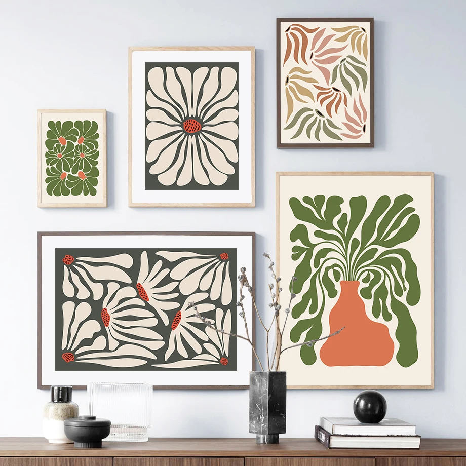 Fiori Rosa Corallo Forme Silhouette Minimalista Wall Art Stampa su tela Pittura Poster per la camera da letto Decorazioni per la casa moderne