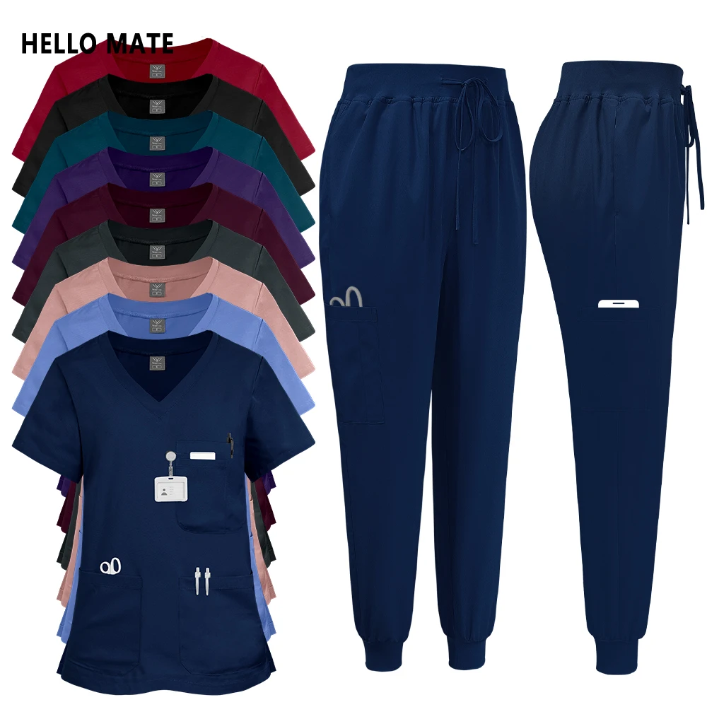 Uniformi da infermiera medica 2 pezzi Top infermieristico clinico Pantaloni Scrub ospedaliero Set Donna Uomo Abbigliamento chirurgico Dentista Tuta Abbigliamento da lavoro
