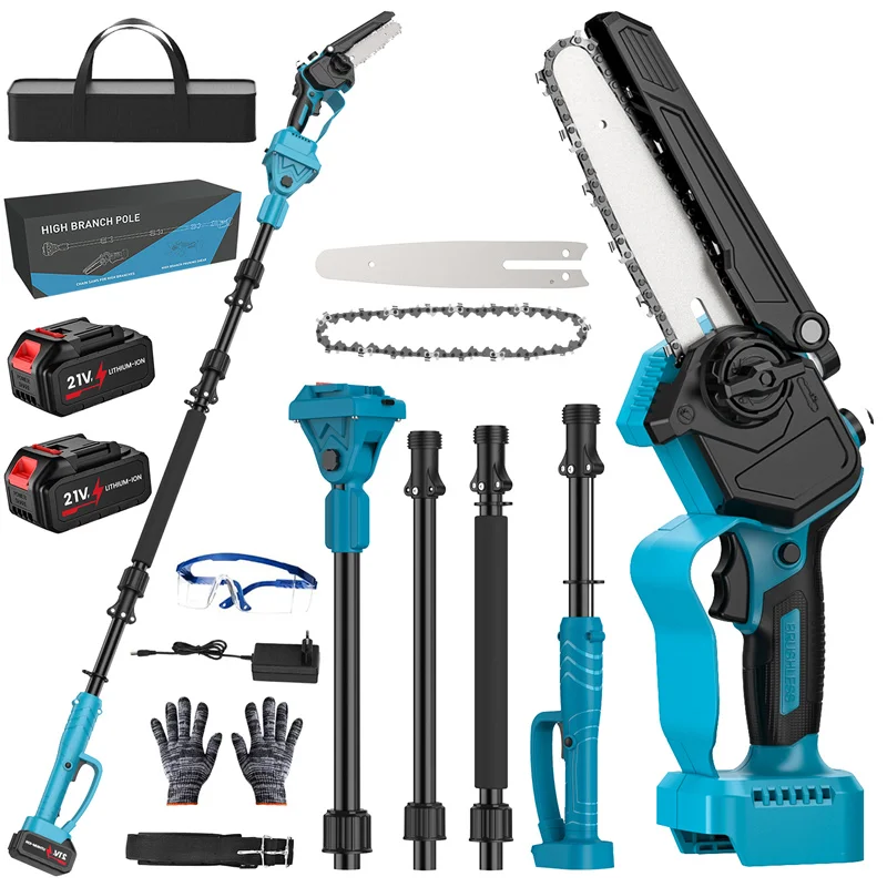 Sega Elettrica Senza Spazzole per Rami Alti 6+8 Pollici con Asta di Prolunga 2M, Motosega da Giardino per Batteria Makita 18V