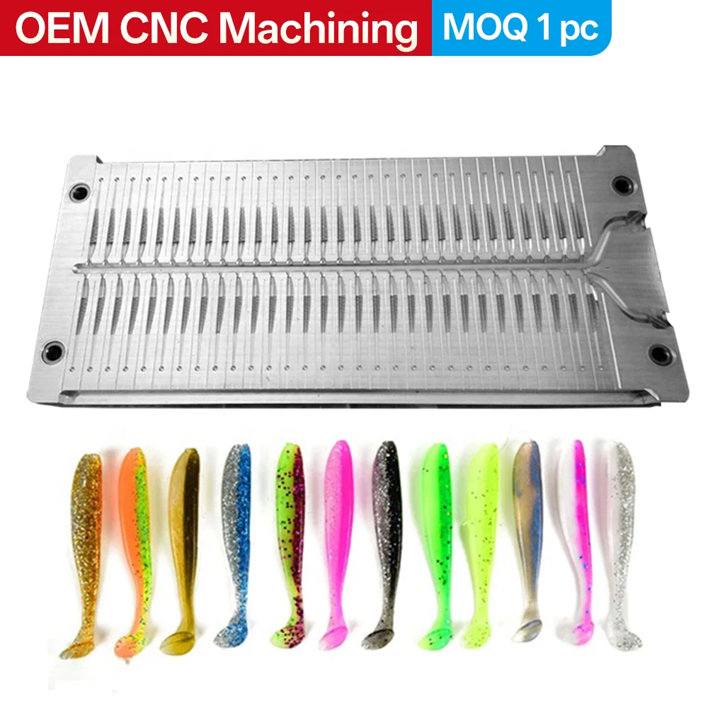 Stampo in alluminio personalizzato 39/5000 per esche da pesca a ragno = Stampi per esche da pesca in plastica morbida OEM/ODM per la pesca. Materiale in alluminio
