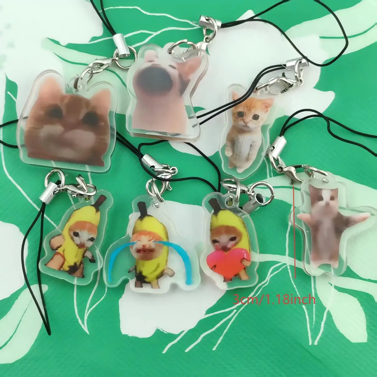 1/7pcs Divertente Banana Cat Acrilico portachiavi/Cordino del telefono cellulare Piccolo pendente Maxwell Catena Fobs Happy Banana Cat Portachiavi
