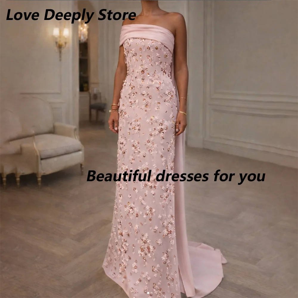 Abito da sera personalizzato Splendidi abiti da ballo a maniche lunghe Increspato Occasioni formali Abito da festa con applicazioni di fiori brillanti Robe Soiree