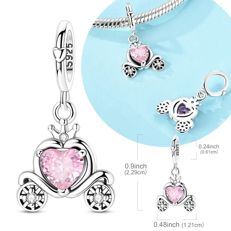 Ciondolo originale in vero argento sterling 925 con zirconi rosa, ciondolo carrozza di zucca, adatto per bracciale originale, collana per le donne, regalo fai da te