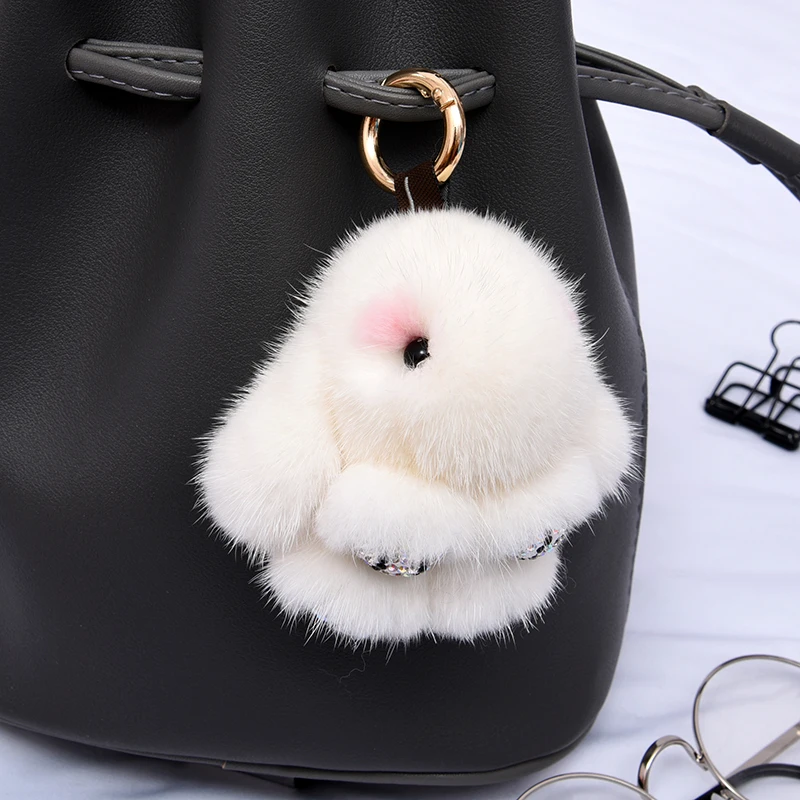 Mini portachiavi in peluche di coniglio carino vera pelliccia di visone stile cucciolo ciondolo per borsa da trasporto per borsa da scuola da donna decorazione accessorio chiave per auto