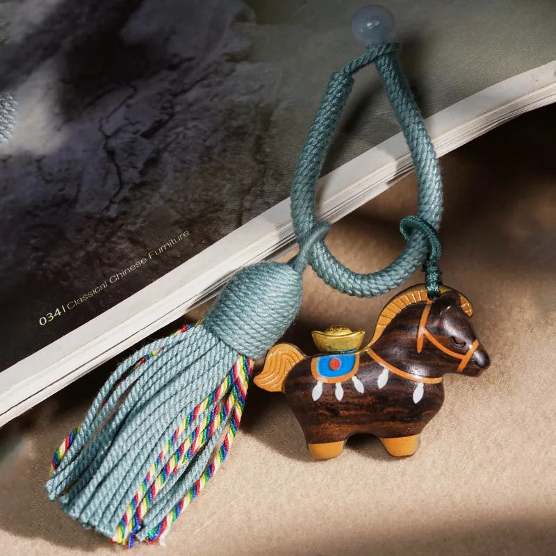 Portachiavi in legno a forma di cavallo, portachiavi rilassante, ciondolo per borsa, ciondolo a forma di carrozza in legno di sandalo, accessorio portachiavi leggero per auto, ideale come regalo