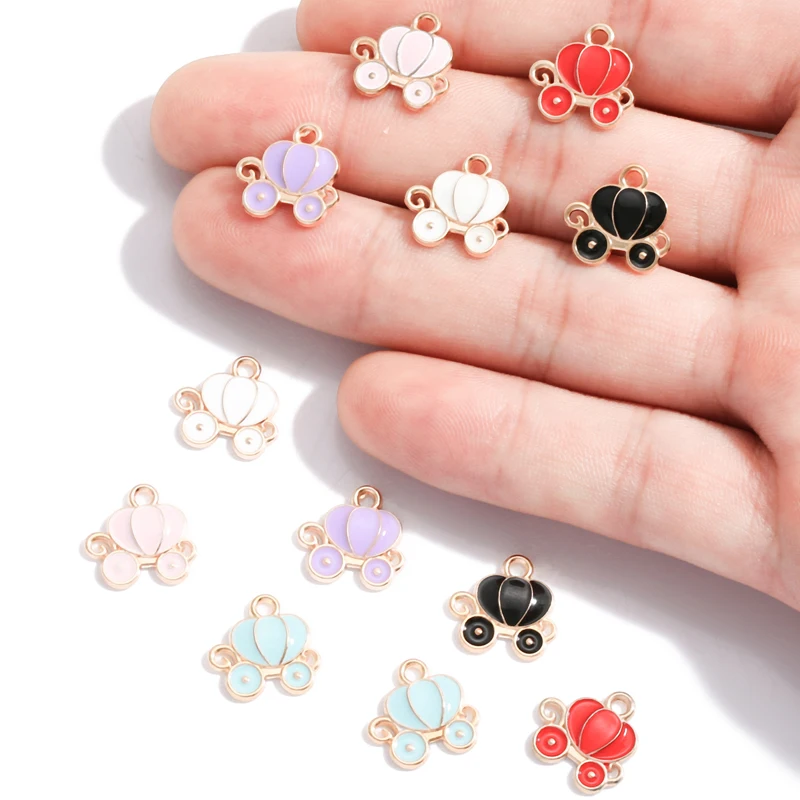 20 Pezzi Ciondoli a Forma di Carrozza Zucca in Lega con Smalto a Goccia 12.5*12.5mm, Adatti per Creazione Fai da Te di Collane, Orecchini, Charms e Accessori per Gioielli