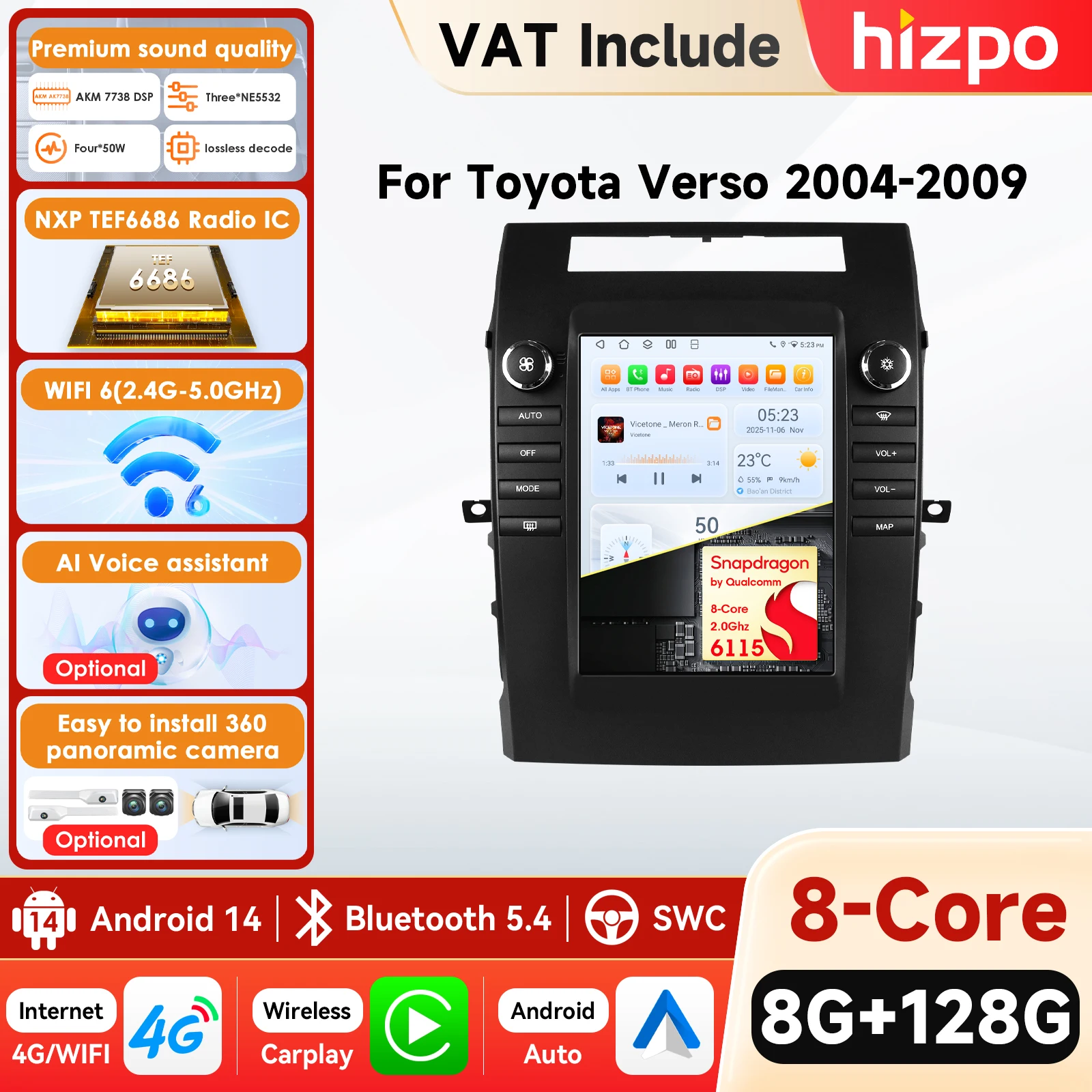 Hizpo Carplay Stereo Autoradio Lettore Video Multimediale Schermo Per Auto Per Toyota Corolla Verso 2004 - 2009 Android Autoradio GPS BT