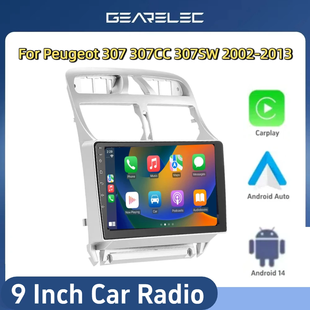 2 Din Autoradio Per Peugeot 307 307CC 307SW 2002-2013 Wireless 9 "Carplay Android Auto GPS WIFI RDS FM APP Android 14 Auto Lettore Video Multimediale