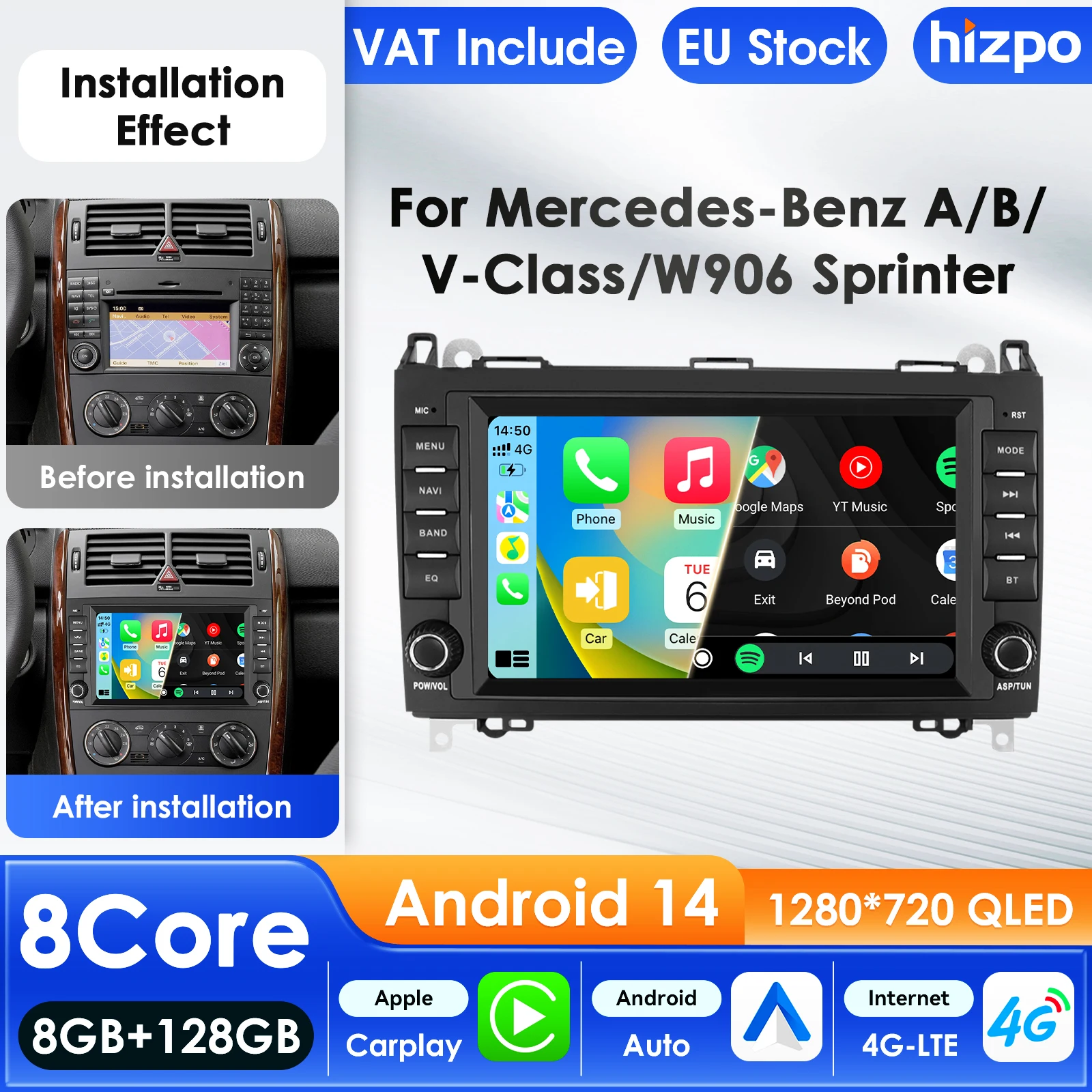 Hizpo 8''Carplay 4G 7862 AI Sistemi Android 14 Autoradio per Mercedes Benz B200 Classe B W169 W245 Viano Vito W639 Sprinter W906
