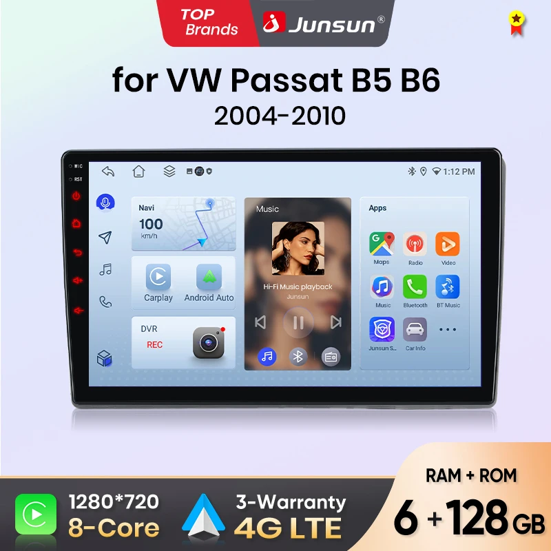 Autoradio Junsun per VW Volkswagen Passat B5 B6 2004 - 2010 con CarPlay Wireless, Android Auto, Plug & Play, FM RDS DSP GPS Multimedia