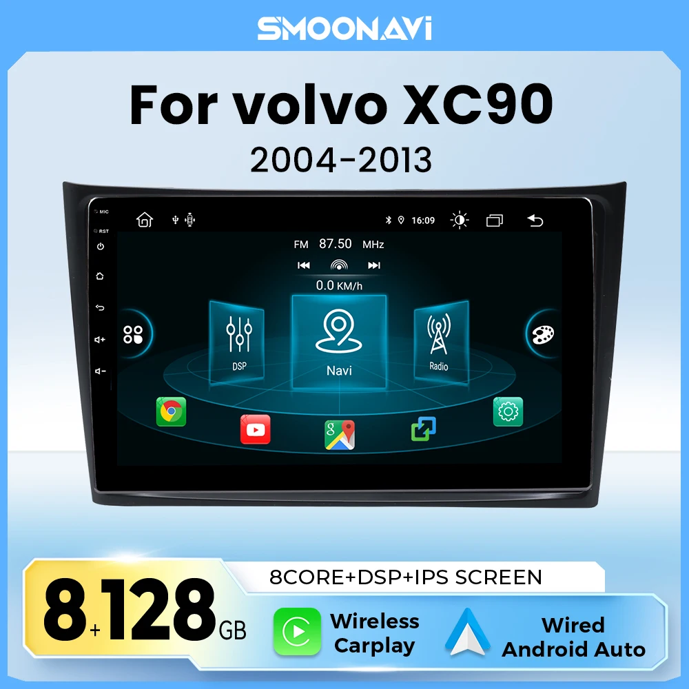 10.1 pollici 8Core Android14 Wireless Carplay Android auto Lettore di autoradio Lettore multimediale per Volvo XC90 2004 - 2013 IPS 4G Wifi