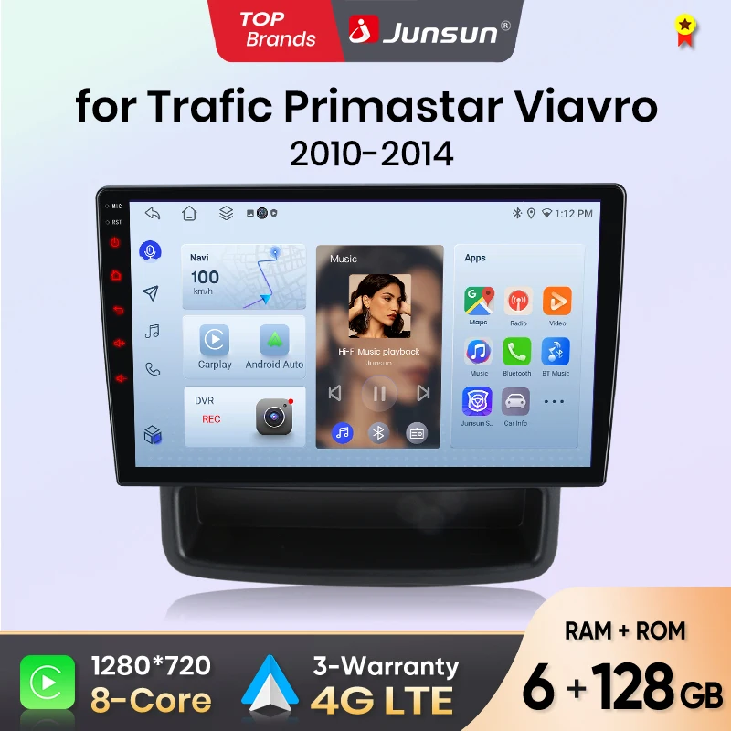 Autoradio Junsun per Renault Trafic Opel Vivaro Nissan Primastar 2010-2014 con CarPlay, Android Auto, FM, RDS, DSP, GPS e Multimedia