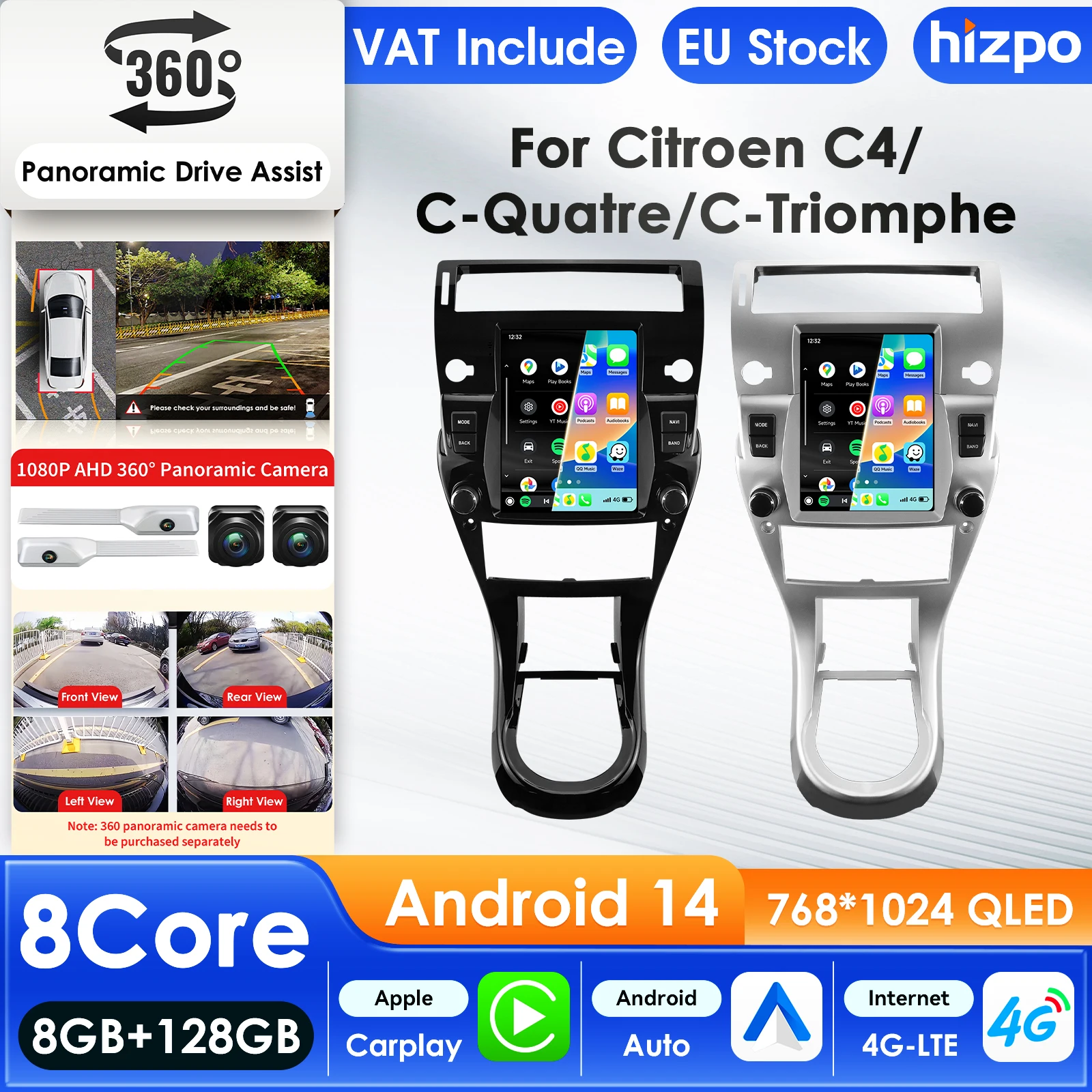 Hizpo 9.7 ''Android 14 Lettore Multimediale Per Auto Per Citroen C4 C-Triomphe Quatre 2004-2014 GPS Carplay 4G AI Bluetooth WIFI FM RDS