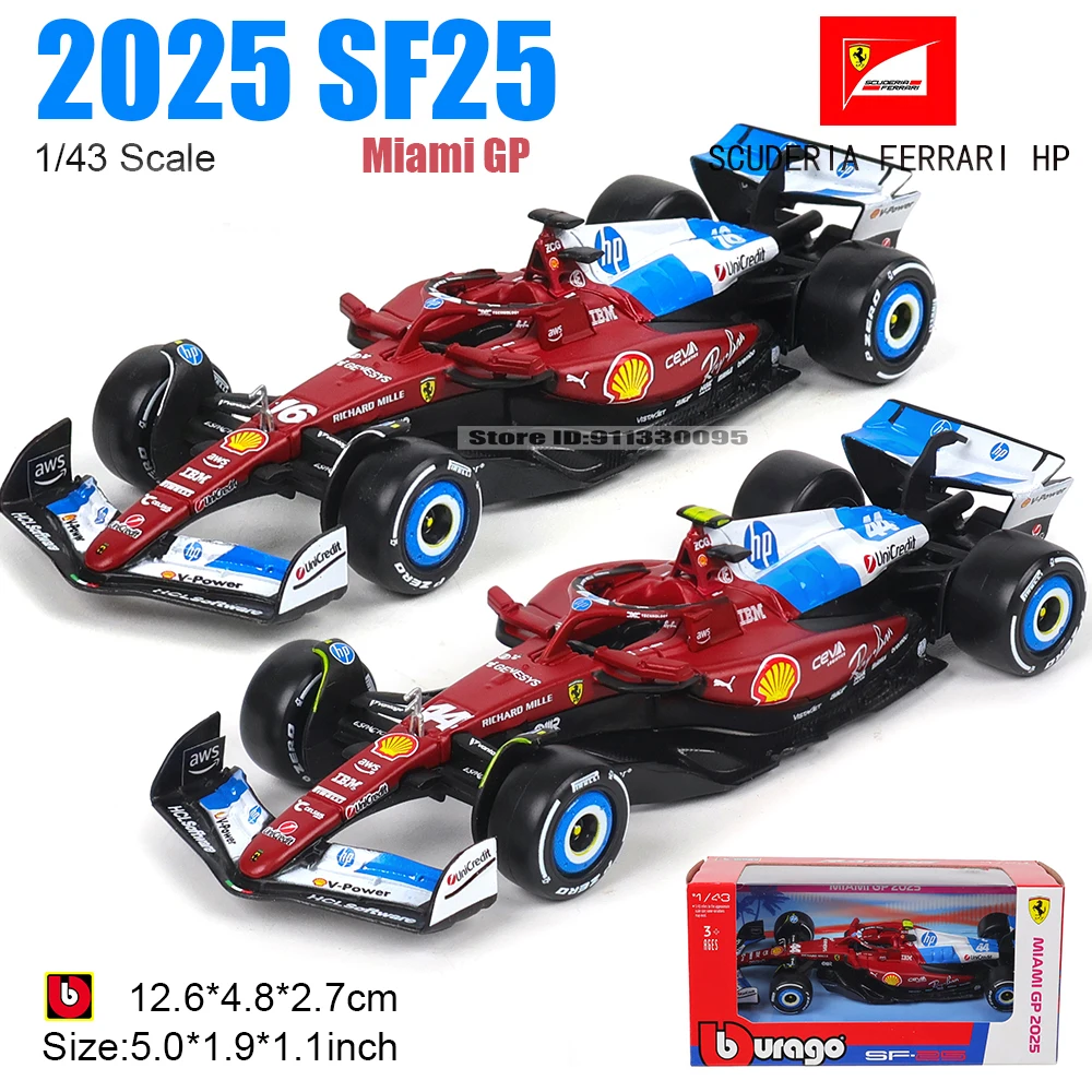 Bburago 1:43 2025 GP di Miami Ferrari SF25 # 16 Charles Leclerc # Modellino Auto in Lega di Lusso Lewis Hamilton Serie 44, Giocattolo Die-Cast