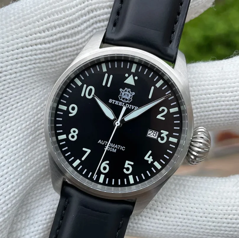Steeldive Orologio automatico da uomo Pilot 43MM Orologio da polso meccanico Diver 20ATM Impermeabile BGW-9 Specchio in zaffiro luminoso NH35