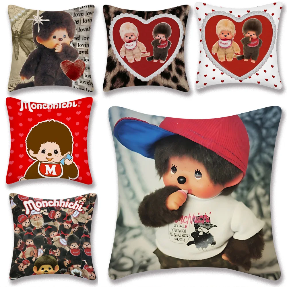 Fodere per Cuscini Decorativi in Peluche Corto con Stampa Fronte-Retro, Design Cartone Animato Monchhichi, per Divano e Casa
