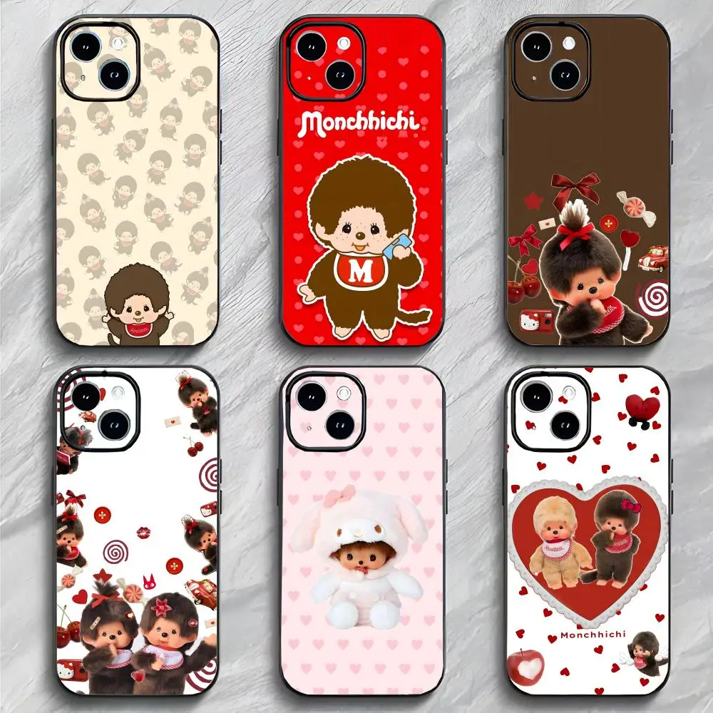 Custodia Morbida in Peluche M-Monchhichi Nera Opaca Sottile Anti-collisione per iPhone 17 16 15 14 ProMax