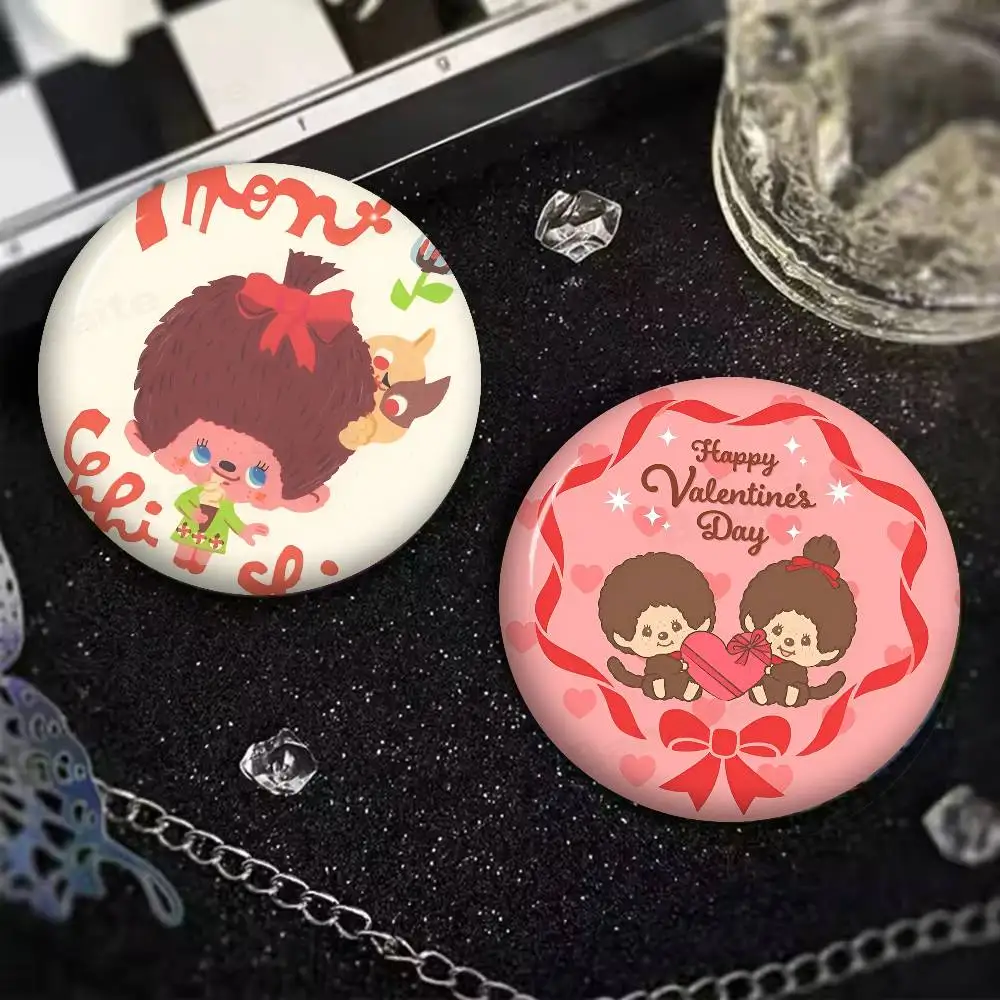 Bambola carina giapponese M-MonchhichiS Spille con bottoni rotondi Slogan Spille creative Zaino Vestiti Decorazione Gioielli di moda Regali