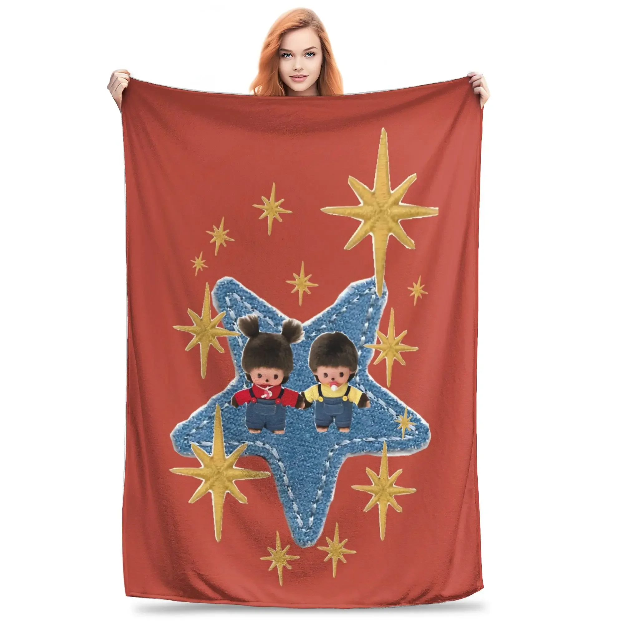 Monchhichis Calda coperta in peluche per studenti Comodo copriletto in flanella perfetto per divano letto e uso esterno