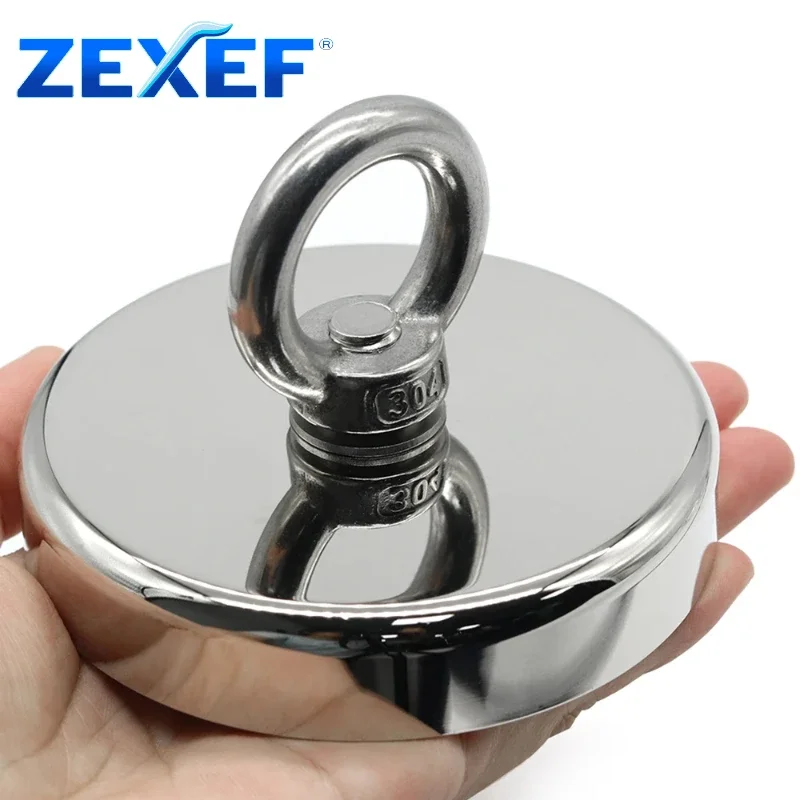 ZEXEF N52 Magneti di ricerca per carichi pesanti Forte magnete al neodimio Magnete di salvataggio Magneti per la pesca in acque profonde Montaggio con anello per occhiello