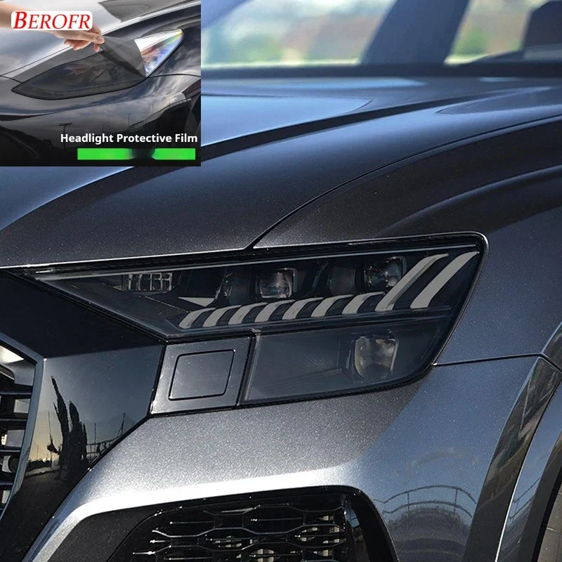 2 Pezzi Pellicola Protettiva per Fari Auto, Adesivo in TPU Trasparente Nero Fumé per Audi Q8 SQ8 RSQ8 2019 2020 2021 2022