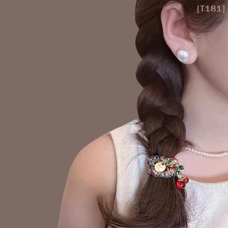 Fascia per capelli colorata con cristalli a forma di ciliegia, anello per capelli con strass, elastico, ad alta elasticità, doppio uso come braccialetto, accessorio per capelli.
