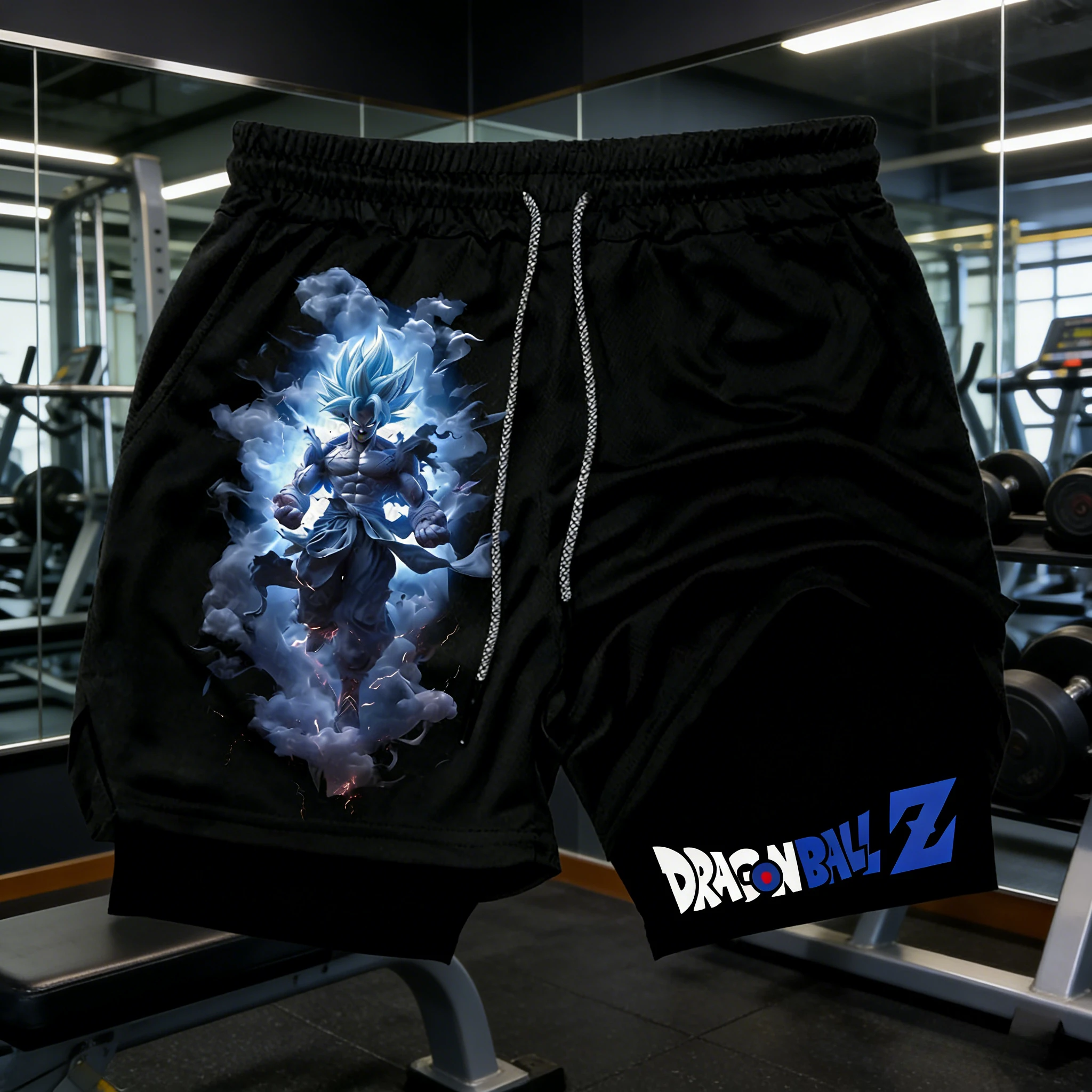 Pantaloncini Sportivi Estivi 2026 Dragon Ball ad Asciugatura Rapida da Uomo, a Doppio Strato, per Fitness e Palestra, con Stampa Super Saiyan Blue Goku, Stile Y2K