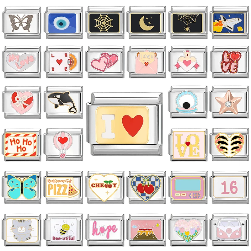 1PC Farfalla Cuore Luna Diavolo Occhi Perline Misura Ciondoli Italiani Collegamenti 9mm Bracciale In Acciaio Inox Gioielli Fai Da Te Fare Regali