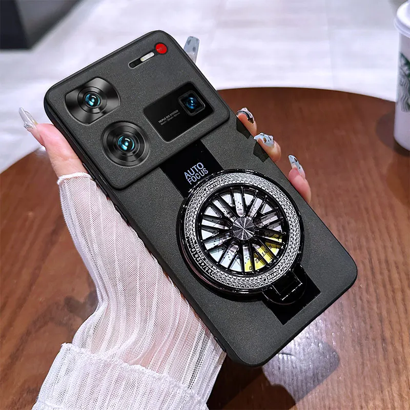 Per Nubia Z70 Z60 Ultra Custodia Giroscopio Staffa Supporto magnetico di lusso Plexiglass PU Pelle di pecora Custodia antiurto in silicone