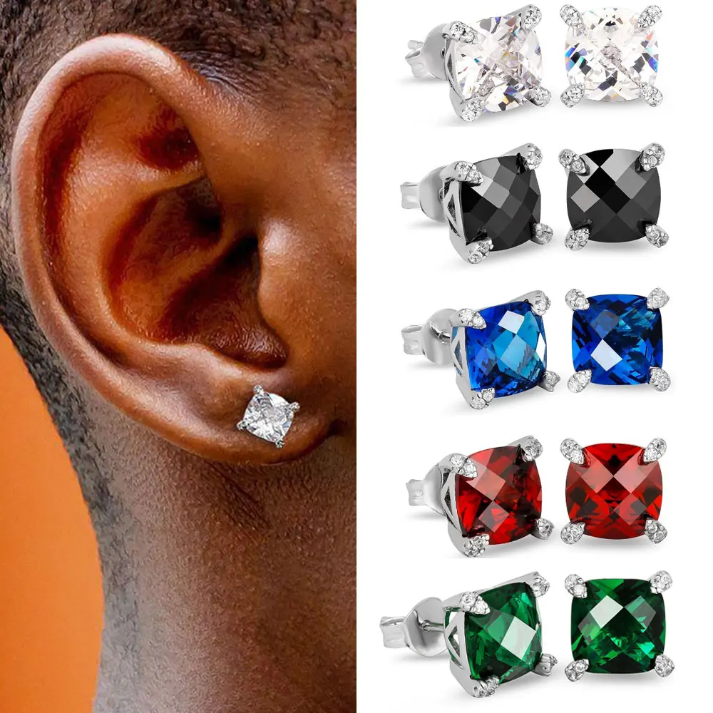 Classic 4 Claws Hippie orecchini a bottone per uomo Square Blue Zirconia Hiphop Piercing all'orecchio lobo accessori Punk Rapper Party Jewelry