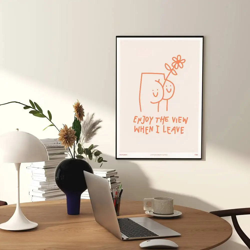Goditi la vista - Poster in carta stampata con scritta 'Friendly Butt' in arancione corallo per soggiorno, camera da letto, ingresso, bar, caffè, arte e decorazione