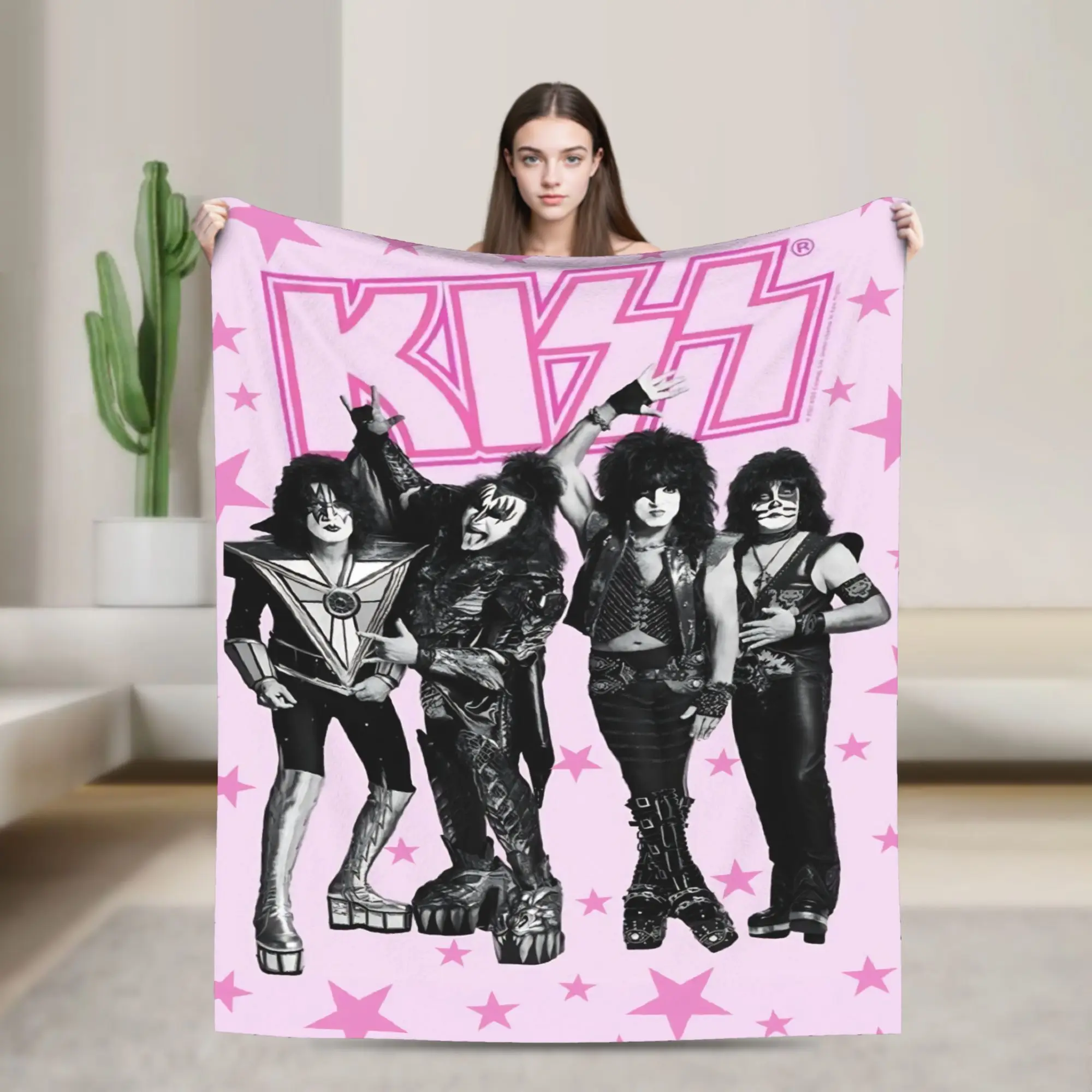 Coperta morbida da viaggio, per ufficio, Kiss American Rock Band, coperta in flanella con poster musicale, copriletto per soggiorno, divano, letto