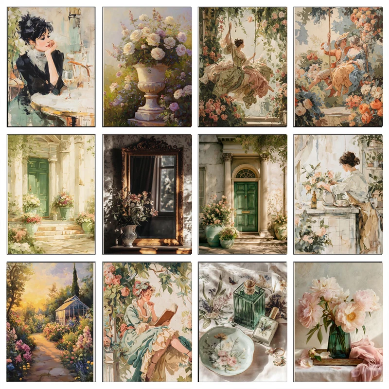 Stampa su Tela di Arte Moderna con Ritratto Vintage Modificato, Poster Surreale Femminile in Stile Rococò Barocco, Decorazione da Parete per Casa e Galleria