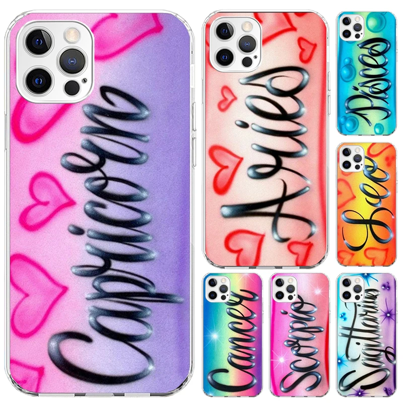 Custodia Morbida e Divertente per iPhone 17 Air 16 15 Plus 14 13 Mini 12 11 Pro Max 16E 7 8 SE 2020 con Segni Zodiacali Ariete Leone Bilancia Pesci Vergine Capricorno