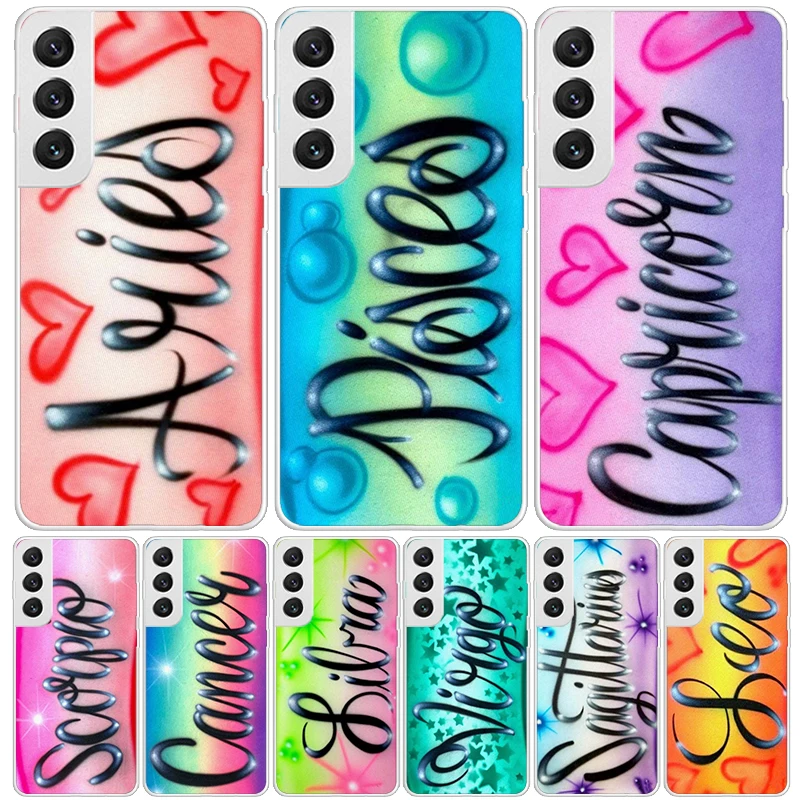 Cover per Telefono con Segni Zodiacali Ariete Leone Bilancia Pesci Vergine Capricorno per Samsung Galaxy S25 Edge S24 S23 S22 S21 FE S20 Ultra S10 Plus + Personalizzabile