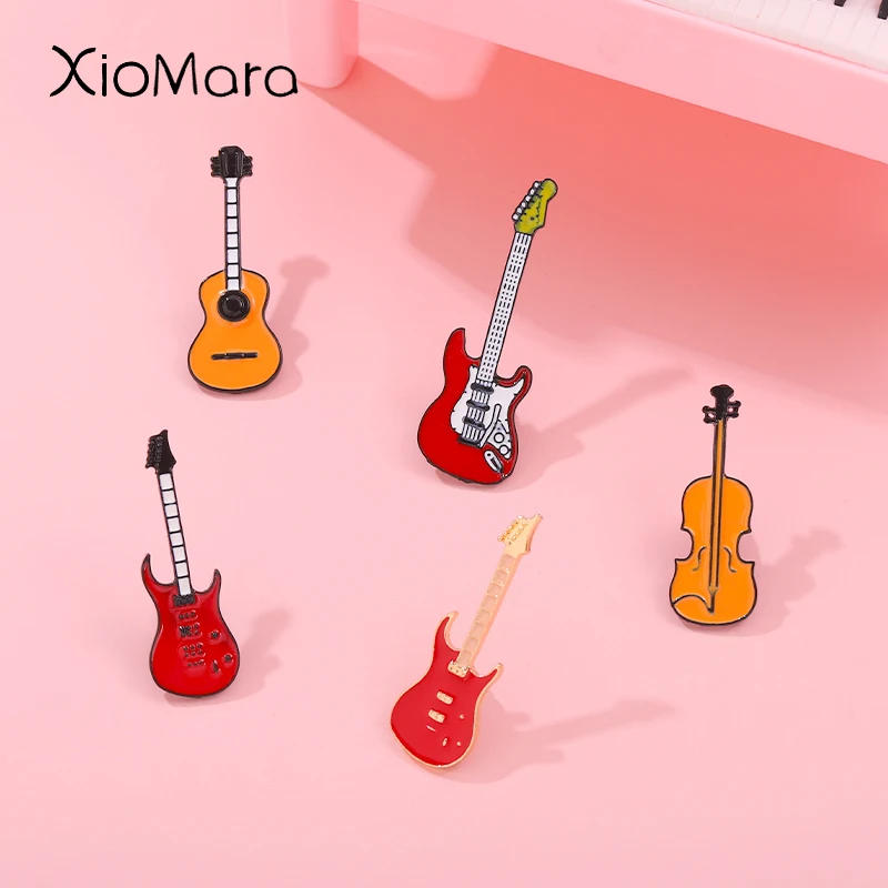 Strumenti musicali spilla smaltata chitarra violino chitarra elettrica spille su vestiti di jeans spilla s gioielli regali per gli amici
