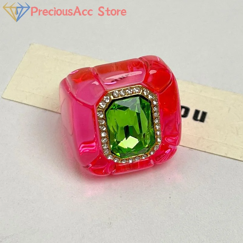 Anelli con strass colorati Anelli in resina con indice geometrico vintage elegante ed elegante Accessori di gioielli di fascia alta di lusso leggero