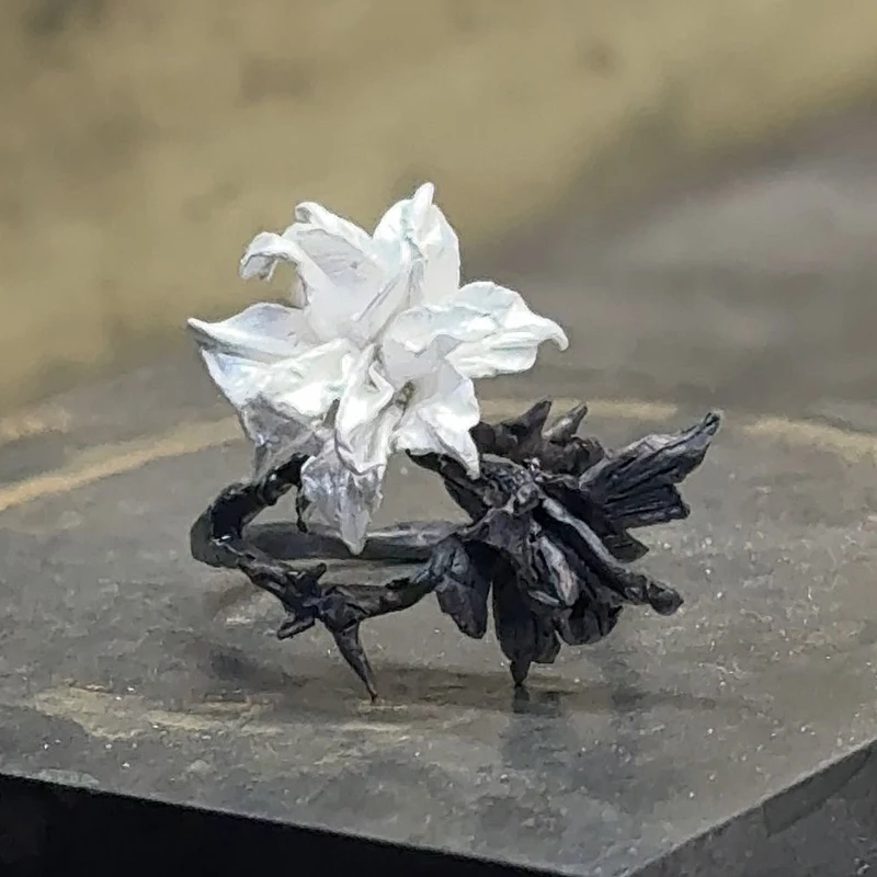 YIZIZAI Anello con fiore mandala in bianco e nero per accessori per gioielli con anello da dito per feste punk in metallo con personalità da donna