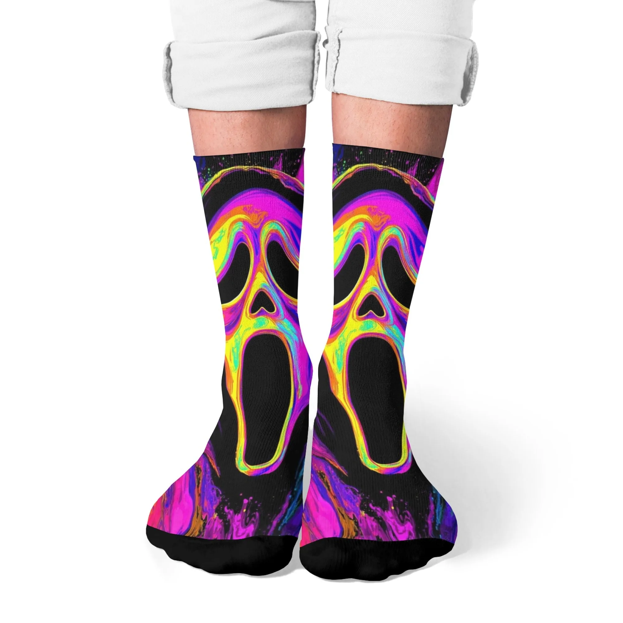 Neon Horror Fantasma Novità Calzini da uomo Stile retrò Calzini di tendenza della personalità Pazzo Hip Hop Calzini divertenti felici Regali per feste di Halloween