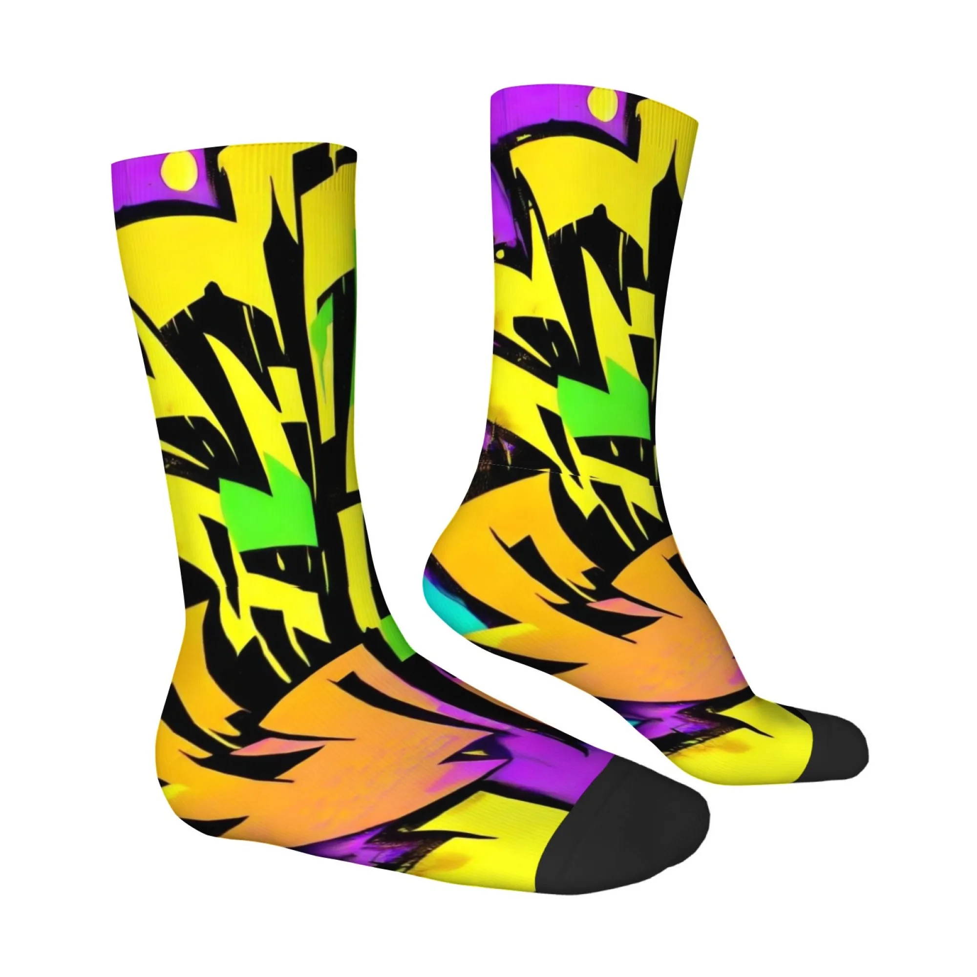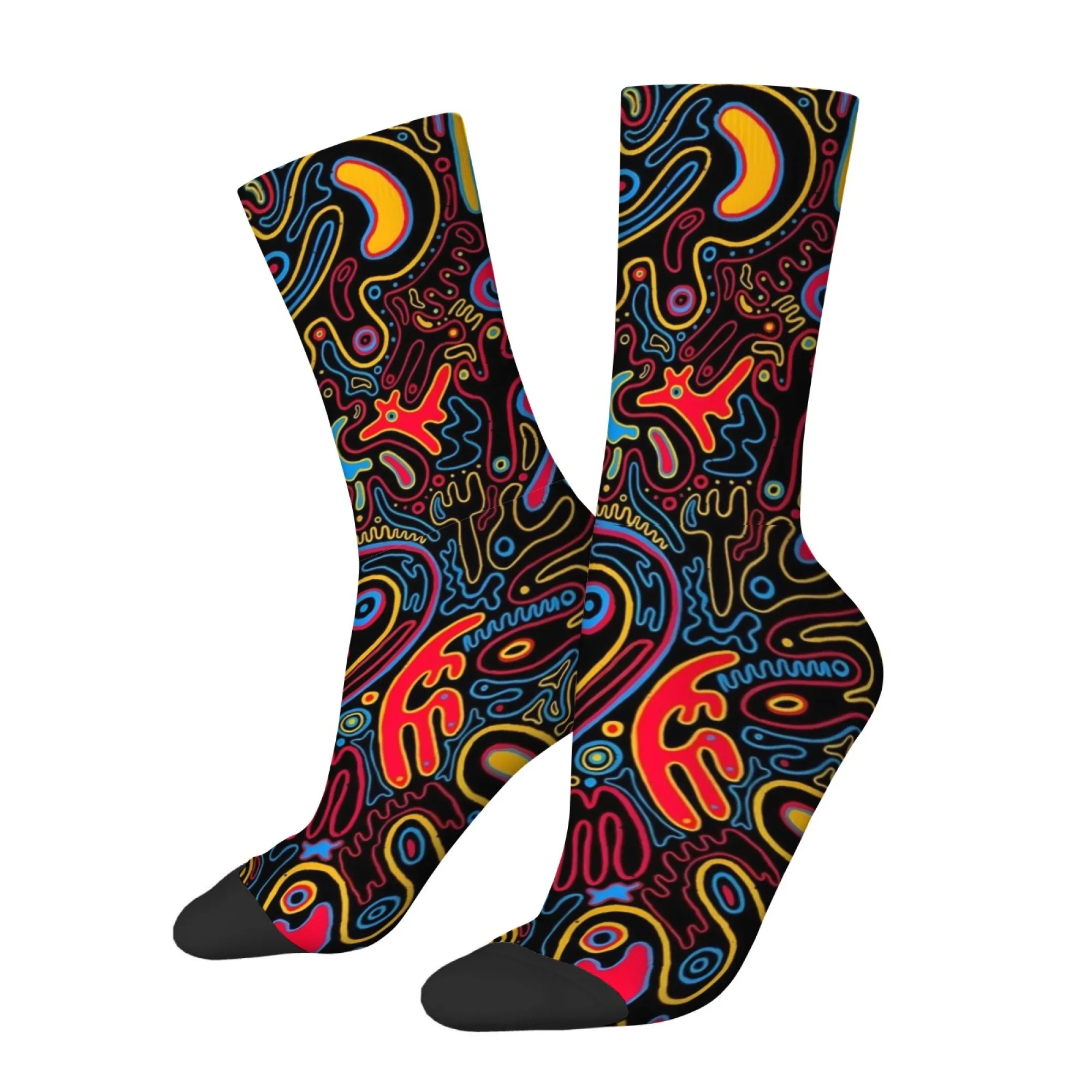 Calzini da uomo a metà polpaccio con graffiti astratti psichedelici fluorescenti, neri, accattivanti, alla moda, perfetti per i festival musicali