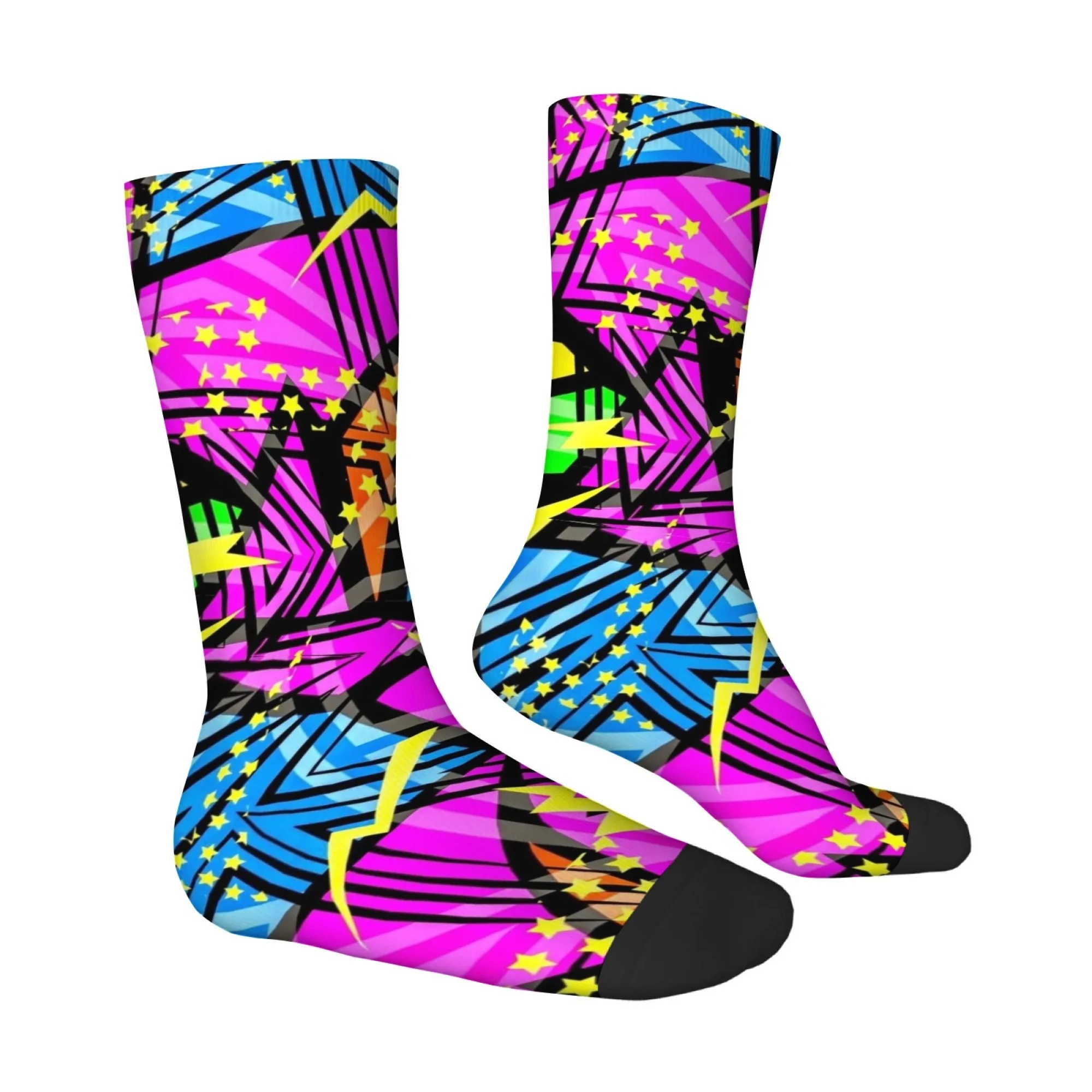 Calzini a Metà Polpaccio con Stampa Geometrica di Fulmini e Stelle, Stile Retrò-Futuristico, Trendy e Unici, Morbidi e Confortevoli