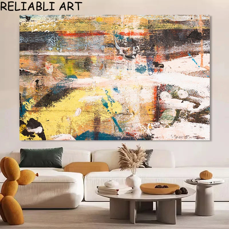 Disordinato colorato astratto tratti di pennello strutturato tela pittura stampa, poster di arte della parete per soggiorno decorazioni per la casa, senza cornice