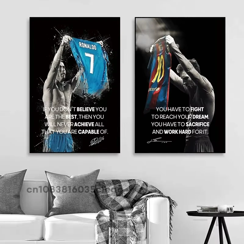 Poster di Messi e Ronaldo, Stelle del Calcio, con Citazioni Motivazionali, Quadri Decorativi su Tela, Immagini da Parete per Camera da Letto e Arredamento Casa