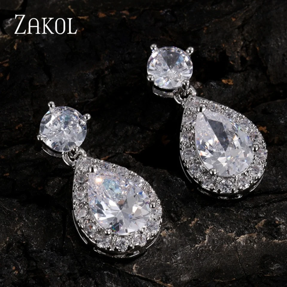 ZAKOL Orecchini pendenti da sposa classici con zirconi cubici a goccia d'acqua per gioielli da fidanzamento da sposa in cristallo CZ alla moda da donna