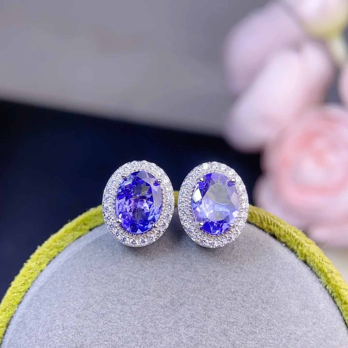 Orecchini in argento con tanzanite naturale S925 Pietra principale Orecchini con pietre preziose naturali intarsiate in argento 6x8 mm